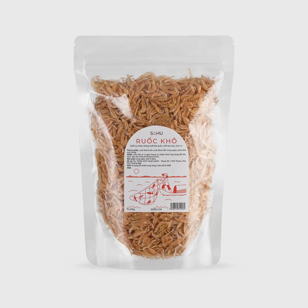 Thành phần: ruốc khô (loại ruốc trũ, được đánh bắt trên mặt nước, có độ ngọt ngon chất lượng)