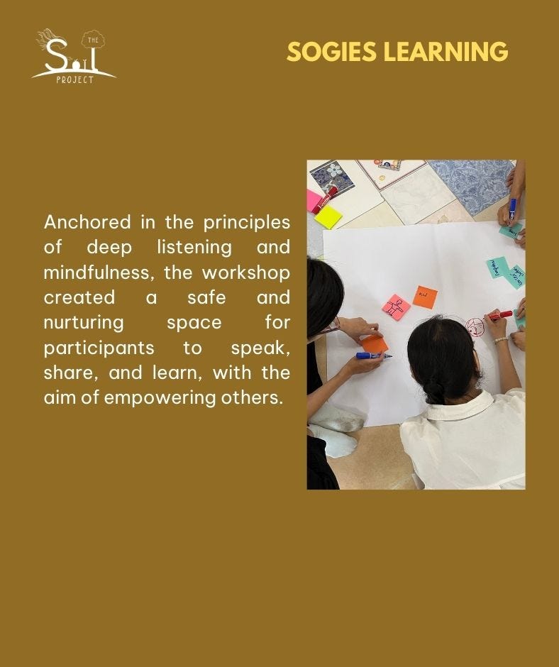 Mới đây, các học viên của The Soil Project vừa hoàn thành một chuỗi workshop về bình đẳng giới và nhận thức về SOGIES (Sexual orientation, Gender identities, Gender expression / Tạm dịch: Xu hướng tính dục, Bản dạng và Biểu hiện Giới tính và Đặc điểm Giới tính). Chương trình được tổ chức tại Trung tâm Nông nghiệp Tự nhiên Mab Eaung ở Chon Buri, Thái Lan, từ ngày 9 đến ngày 11 tháng 4, như một phần của Module I - Body & Mind Cultivation: Self Understanding.