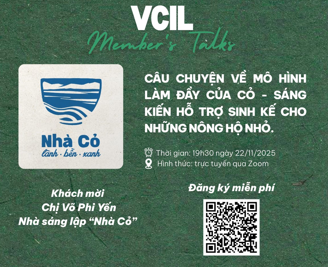Vcil Members’ Talks là chuỗi sự kiện hàng tháng mở cho công chúng, nơi những câu chuyện, sáng kiến và mô hình tái tạo từ hệ sinh thái cộng đồng Vcil được lan tỏa.