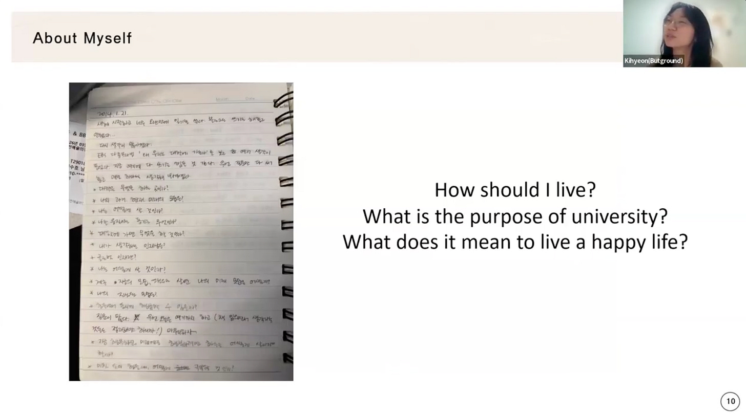 Trong buổi chia sẻ, Kihyeon chiếu lại một video ghi lại hoạt động đó, bạn nhận ra rằng đó là lần đầu tiên mình thực sự gặp gỡ các farmer và câu hỏi bật ra một cách tự nhiên rằng, tại sao sinh ra và lớn lên ở thành phố, mình lại chưa từng một lần gặp những người sống ở một vùng khác, với một lối sống hoàn toàn khác?