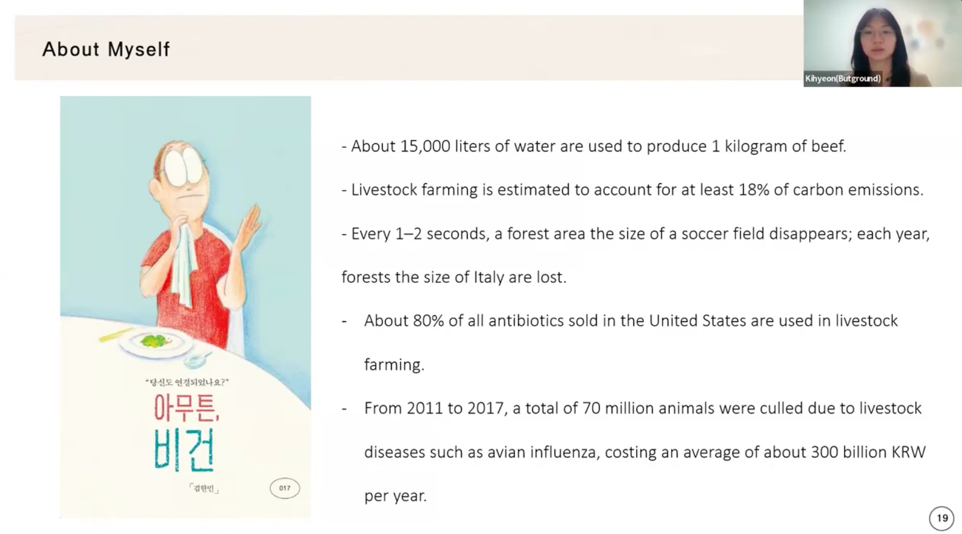 Những con số này, khi đọc lần đầu, vẫn có vẻ như những thống kê xa vời, cho đến khi Kihyeon nhìn chúng từ một góc độ khác: tất cả những điều đó đều gắn trực tiếp với từng bữa ăn hằng ngày, với từng lựa chọn tưởng chừng rất nhỏ và rất cá nhân của mỗi người. Khoảnh khắc đó khiến bạn nhận ra rằng một hành động tưởng chừng chỉ là sinh hoạt cá nhân lại đang nối liền với những hệ quả ở quy mô toàn cầu. Song điều khiến bạn bất ngờ hơn cả không phải là bản thân những con số đó, mà là việc gần như hiếm ai nói về những điều này, như thể những mối liên kết ấy luôn tồn tại nhưng lại bị che khuất khỏi nhận thức của phần lớn chúng ta.