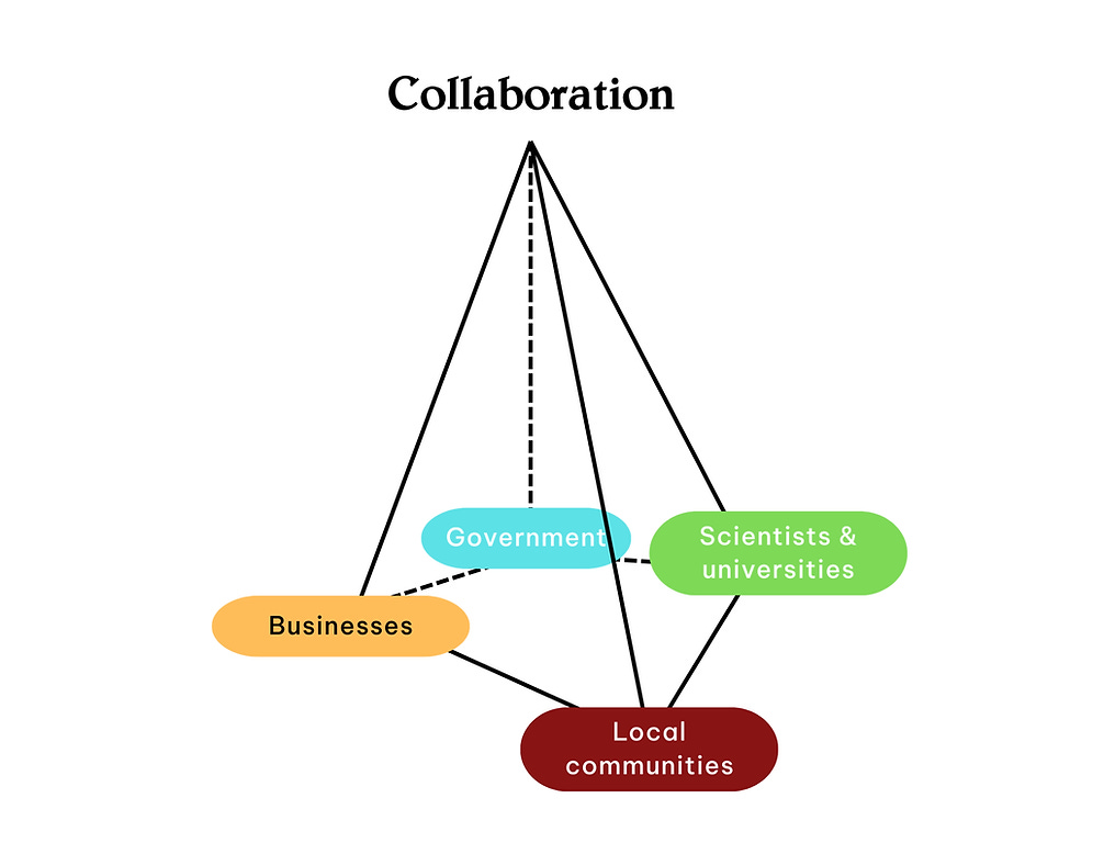 Nhưng làm thế nào để những ý tưởng này không chỉ dừng lại trên giấy? Đó chính là lúc ta cần sự hợp tác và đồng thuận giữa các bên: người dân, giới khoa học, chính quyền và doanh nghiệp. Người dân là những người sống và lớn lên cùng mảnh đất ở quê hương mình: họ hiểu rõ từng dòng suối, từng tán rừng. Giới khoa học với vai trò tổng hợp và hỗ trợ nghiên cứu. Chính quyền giữ vai trò định hướng và đảm bảo tính pháp lý, trong khi doanh nghiệp có thể tạo ra các mô hình kinh doanh bền vững để thúc đẩy phát triển kinh tế. Nếu chỉ có một nhóm hành động, mọi nỗ lực đều dễ dàng rơi vào tình trạng mất cân bằng.