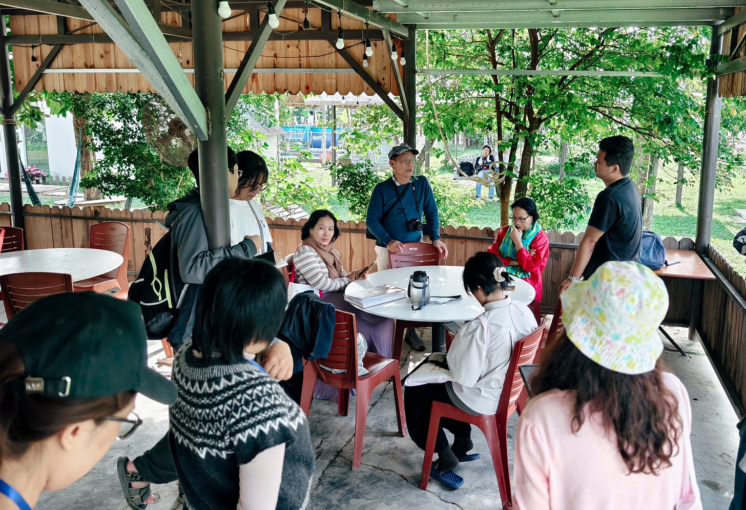 Sự đối lập này không chỉ hiện hữu trong cảnh quan, mà còn in hằn trong cuộc sống của người dân – khi một bên là công việc mưu sinh trong xí nghiệp, bên kia là trách nhiệm bảo tồn thiên nhiên. Nhưng thầy Trinh luôn nhắc chúng tôi rằng, trong mọi thách thức, luôn có những điểm sáng. Dù có thể tồn tại sự mâu thuẫn giữa hai công việc, nhưng điều tốt là người dân vẫn duy trì được sự ổn định về kinh tế. Điều này giúp việc bảo tồn không trở thành một gánh nặng, mà thay vào đó, nó có thể phát triển song song với cuộc sống của họ và khu sinh thái nhỏ Bàu Cá Cái cũng được tái sinh từ đó. Đây cũng chính là cốt lõi của phương pháp phát triển cộng đồng dựa trên tài sản sẵn có (ABCD – Assets-Based Community Development): không chỉ nhìn vào những vấn đề, mà còn tìm ra giá trị tích cực để từ đó xây dựng giải pháp bền vững.