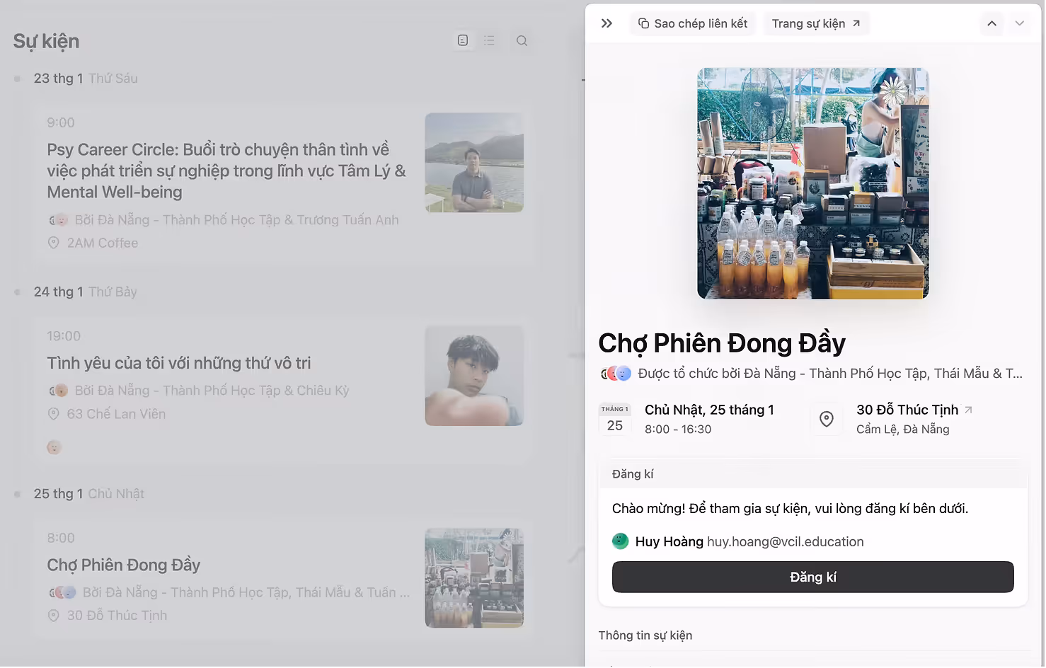 Bước 2: Bạn sẽ thấy danh sách các sự kiện đang được mở đăng ký
