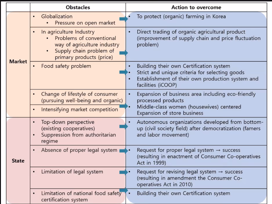 Bắt nguồn từ những hệ quả của quá trình công nghiệp hóa trong thế kỷ trước, từ ô nhiễm môi trường, mất cân bằng xã hội cho đến thực phẩm không an toàn; nhằm giải quyết các vấn đề trên, phong trào hợp tác xã (HTX) tiêu dùng đã được khởi xướng từ trong cộng đồng và nở rộ trên khắp Hàn Quốc nhằm tái hình dung mối quan hệ cơ bản nhất: giữa người sản xuất và người tiêu dùng.