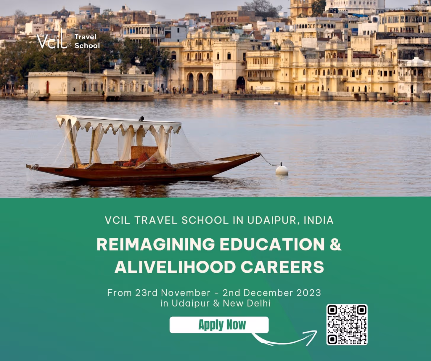 Từ ngày 09 - 22/10/2022, VCIL Travel School với chủ đề Reimagining Education & Alivelihood Careers với hành trình chất vấn lại hệ thống phát triển hiện tại và hình dung (reimage) về giáo dục, phát triển, mối quan hệ chúng ta đối với tiền, hệ thống kinh tế và tiền tệ mà chúng ta đang theo đuổi thông qua các chuyến viếng thăm để học tập, trao đổi và tận mắt chứng kiến, trải nghiệm cách mà những cá nhân, tổ chức và cộng đồng đang thực hiện để hiện thực hóa về một giấc mơ tốt đẹp hơn đã diễn ở thủ đô New Delhi và thành phố Udaipur của Ấn Độ.