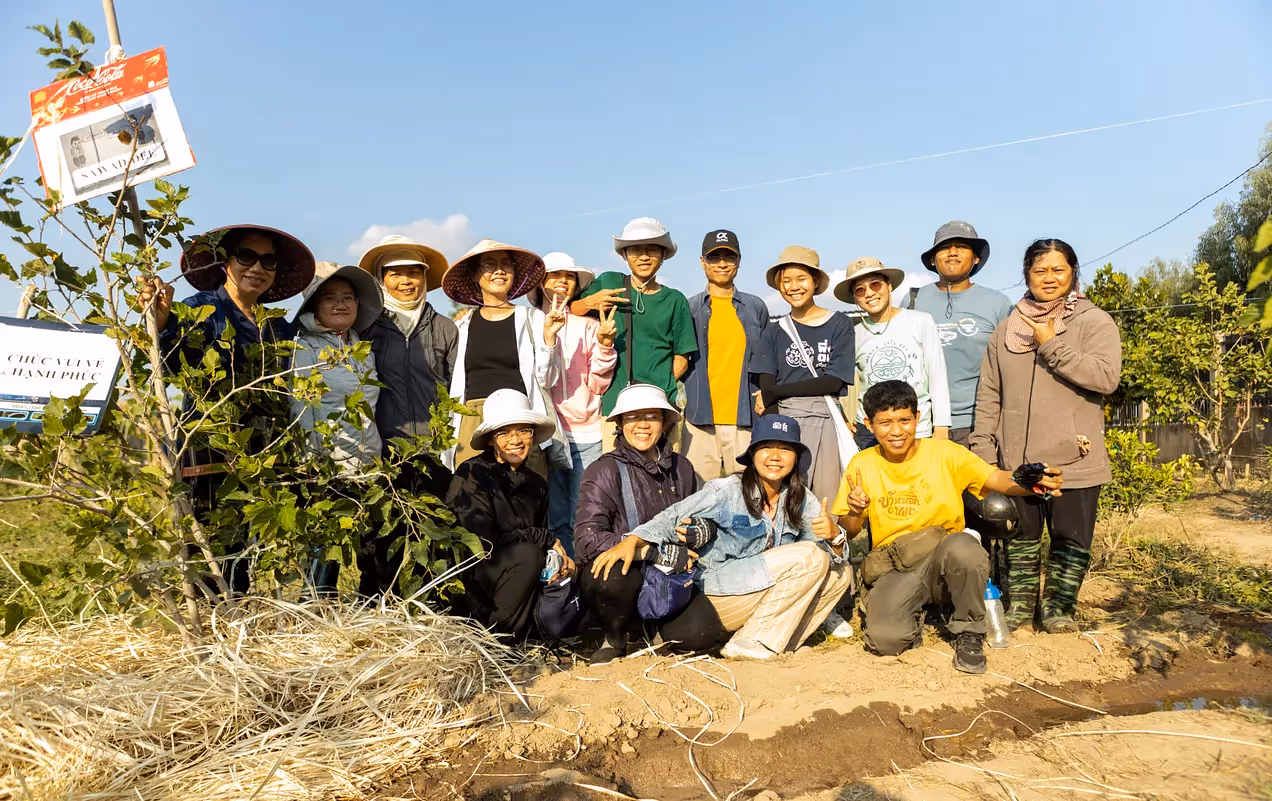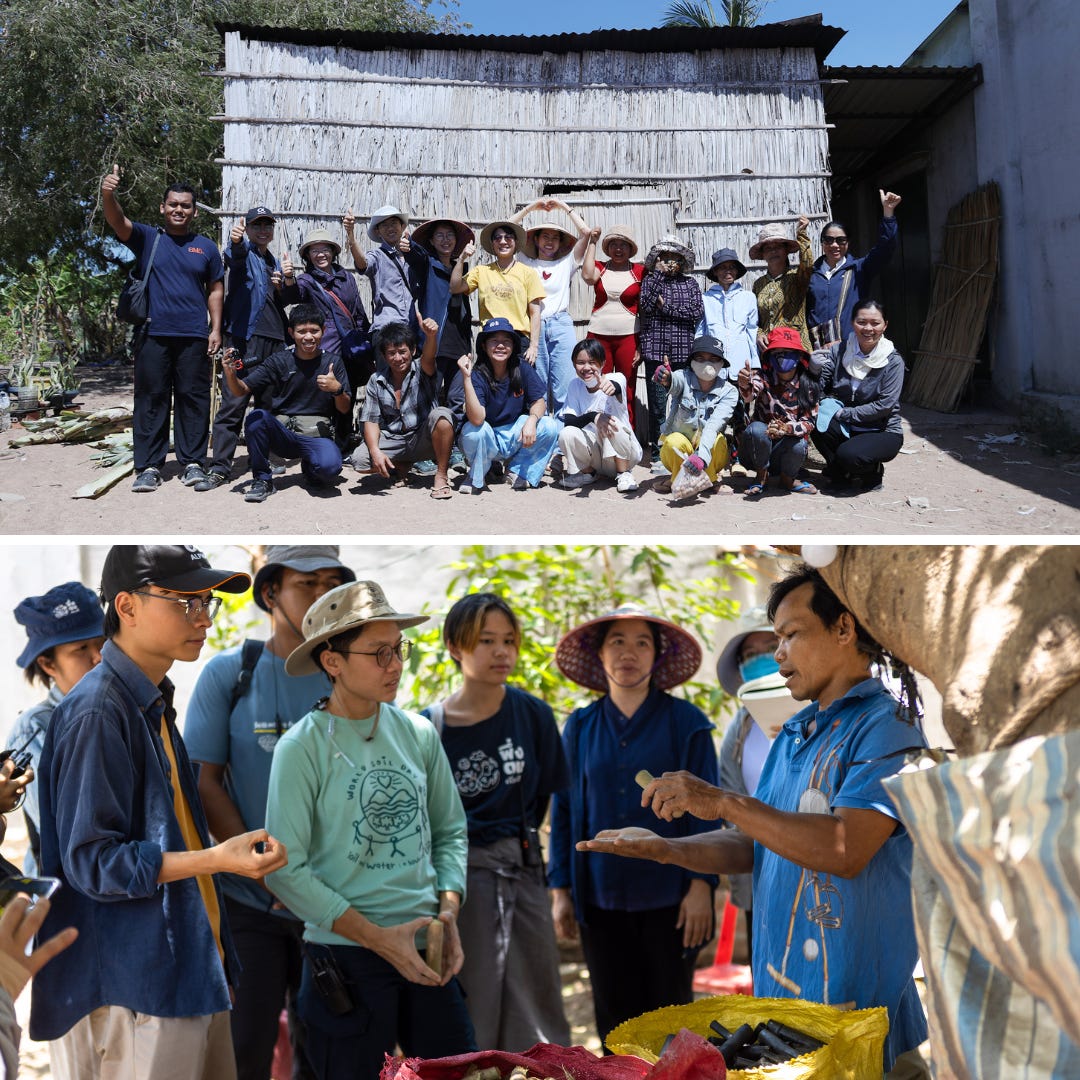 ⭐️ 12 ngày, 4 cộng đồng dân tộc thiểu số, 3 tỉnh thành duyên hải Nam Trung Bộ và thử nghiệm 3 mô hình mẫu. Một hành trình dài với đầy đủ cung bậc cảm xúc. Từ những giây phút hào hứng lúc họp bàn kế hoạch, đến khó khăn thử thách và cuối cùng là cảm giác mãn nguyện với thành quả. Đúng với tinh thần “Nơi nào có vấn đề, nơi đó có lớp học" của trường Pudalay Mahavijalaya. Đến Việt Nam lần này, đoàn Thái Lan có tổng cộng 6 người. Chị Tang là trưởng đoàn và điều phối chính các hoạt động giáo dục. Một anh nông dân trẻ và người thực hành SEP cung cấp các kiến thức thực tế, đi cùng chị quản lý chung. Ngoài ra còn có 2 anh chị chuyên phụ trách truyền thông, chụp ảnh và quay phim. Cuối cùng là một bạn học sinh từ trường giáo dục thay thế Pudalay Mahavijalaya. Đội ngũ hình thành dựa trên kỹ năng sử dụng ba công cụ có thể tạo nên thay đổi xã hội mạnh mẽ nhất: cây cuốc, bút và chiếc máy ảnh.