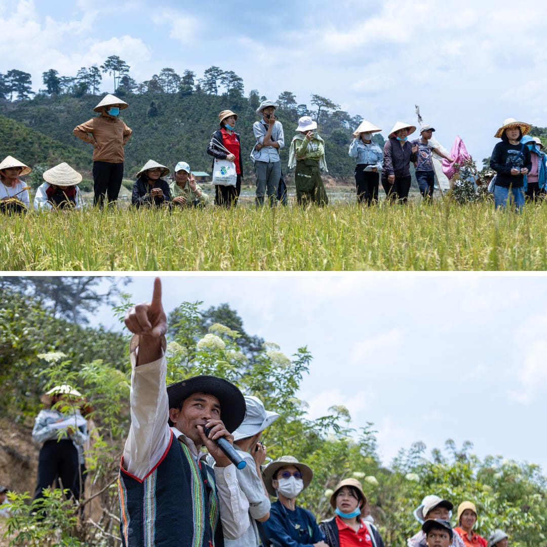 Sự giàu có đó đang ngày càng giảm dần kể từ khi quá trình độc canh đi kèm với các kỹ thuật “tiên tiến" được giới thiệu vào làng. Những con suối ngày càng khô kiệt, đất trở nên cằn cỗi và chi phí sản xuất đầu vào ngày càng tăng khiến bà con rơi vào vòng xoáy nợ nần. Được sự hỗ trợ của Cartias Đà Lạt, nhóm cộng đồng đang bắt đầu thử nghiệm canh tác các giống lúa thuần chủng không dùng phân thuốc hoá học. Chứng kiến những nỗ lực chuyển đổi của bà con và Caritas Đà Lạt, VCIL Community cảm thấy rất trân trọng và ngưỡng mộ.