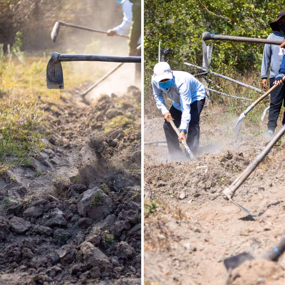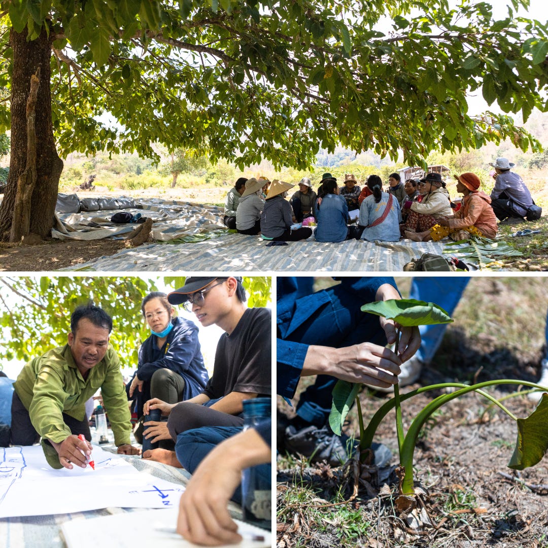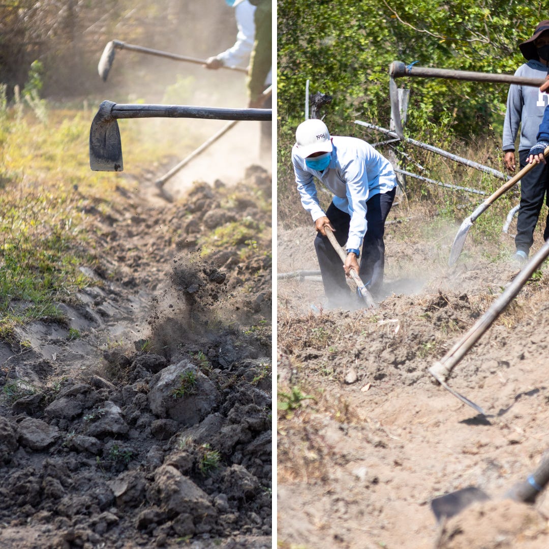 Việc thực hành trên còn được ứng dụng ở cộng đồng Phan Sơn tại rẫy của chị Hương - một cựu học viên khoá SEP diễn ra trong tháng 03 vừa rồi. Với sự góp mặt của rất nhiều dân làng Boon Thóp, mọi người đã hoàn tất con mương chính đi xuyên qua một phần khu đất của chị Hương. Con mương này sẽ thu một lượng nước lớn từ đồi bên cạnh, từ đó phân phối đến các vị trí khác thông qua đường kênh nhỏ hơn. Điều quan trọng trước khi thiết kế một khu vườn, chúng ta cần khảo sát không chỉ thông tin địa lý (hướng gió, lượng mưa, chất đất,...) mà còn phải hiểu bối cảnh kinh tế xã hội của gia chủ (phong tục tập quán, các món ăn truyền thống, giá trị,...). Buổi chia sẻ đã được diễn ra với sự tham gia tích cực và hăng hái từ người dân địa phương.