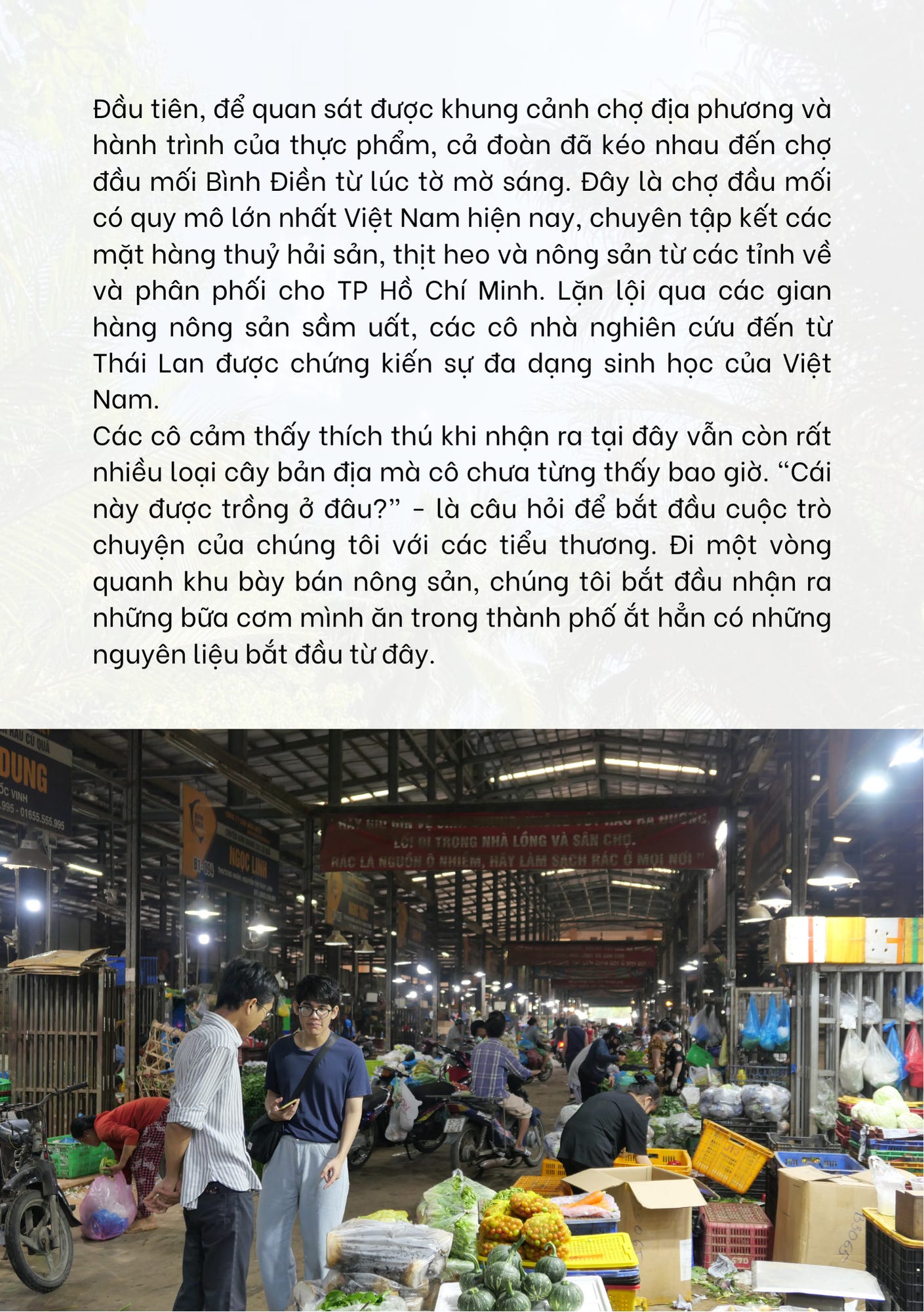 Chuyến hành trình thú này đã đưa chúng mình đến chợ đầu mối, gặp gỡ doanh nghiệp chế biến & xuất khẩu thực phẩm hữu cơ, nền tảng kết nối nông sản bền vững trực tuyến, viện nghiên cứu và trò chuyện cùng người nông dân đã trực tiếp chứng kiến sự thay đổi của nền nông nghiệp nước nhà.