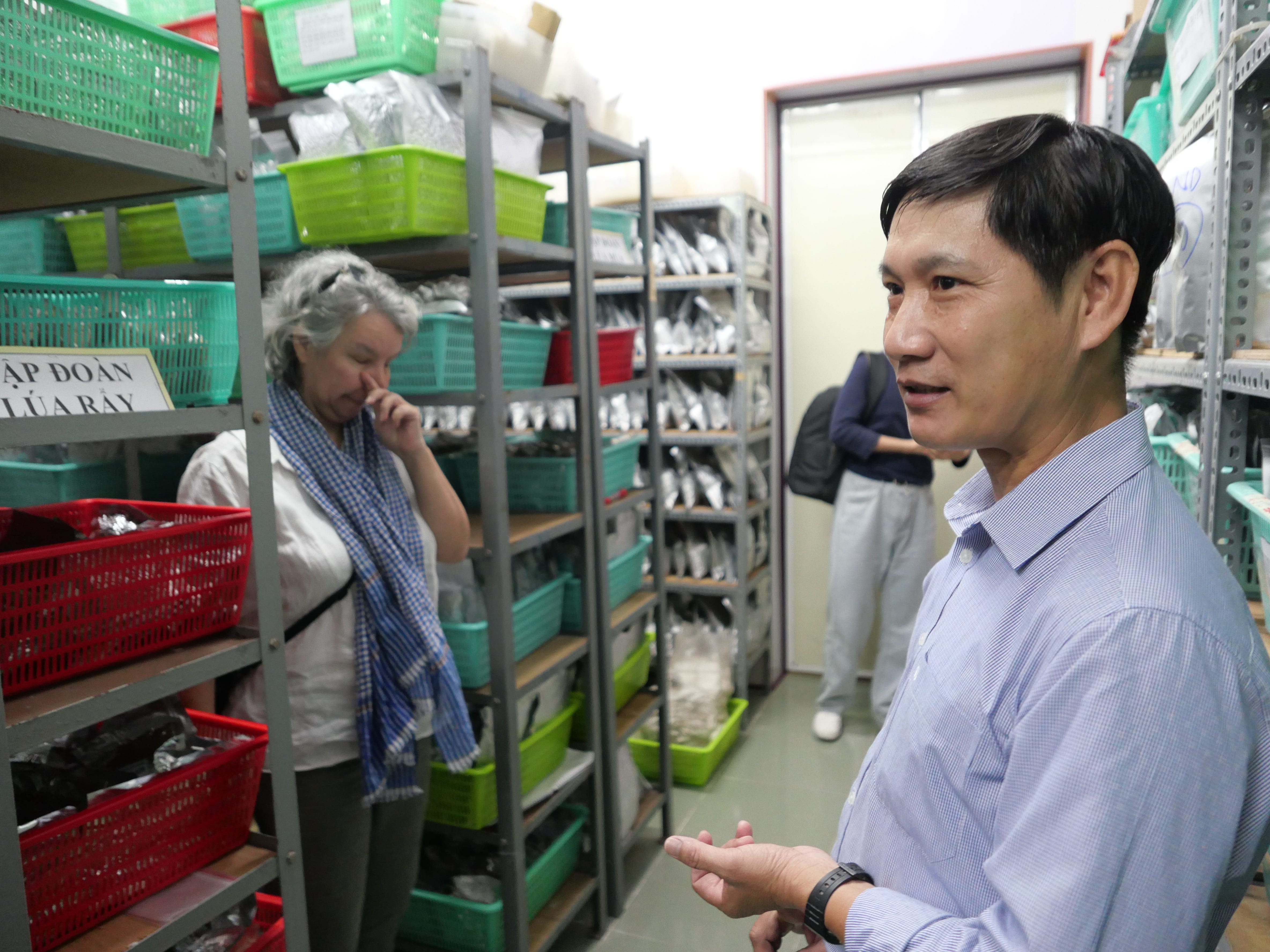 👉🏼 Ngày hôm sau, chuyến hành trình đưa cả đoàn đến thăm Viện nghiên cứu phát triển đồng bằng sông Cửu Long (viết tắt là MDI) trực thuộc đại học Cần Thơ. Tại đây, chúng tôi đã có dịp tham quan ngân hàng hạt giống do giáo sư Võ Tòng Xuân sáng lập nơi hiện đang lưu trữ khoảng 2,000 mẫu giống lúa mùa và 700 mẫu giống lúa rẫy, cộng thêm bộ sưu tập lúa cao sản. Ngân hàng hạt giống trong kho đông lạnh này vừa đóng chức năng bảo tồn nguồn gene, vừa là cơ sở dữ liệu để đối chứng trong tiến trình khảo nghiệm giống mới lai tạo.