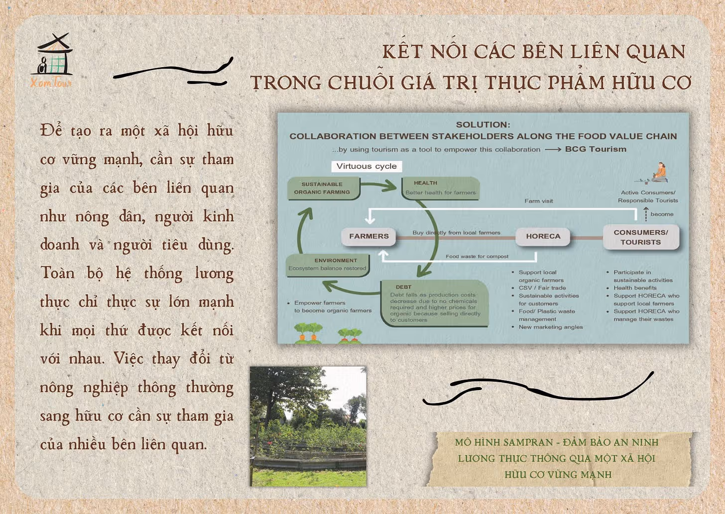 Đó là lí do, hiện tại XomTour (trực thuộc Vcil Community) đang phối hợp cùng đối tác Food Vision Global Network để phát triển một chương trình học tập có tên gọi là "Climate-gastronomy Learning Journey" vào năm sau. Chương trình không chỉ đơn thuần khám phá ẩm thực qua vị giác mà hơn thế nữa là nhịp cầu kết nối chúng ta với thiên nhiên, với những người nông dân đã đổ mồ hôi vun trồng, và cả với các thế hệ quá khứ cũng như tương lai. Nuôi dưỡng sự hiểu biết về thực phẩm (food literacy) giúp chúng ta ý thức được việc ăn uống không chỉ vì sức khỏe bản thân, mà còn để xây dựng một hệ thống thực phẩm nơi người sản xuất được chi trả công công bằng, hệ sinh thái được tôn trọng, và cộng đồng được nuôi dưỡng. Từ đó, chúng ta biết cách để thưởng thức một món ăn ngon với sự trân trọng và biết ơn thực phẩm một cách tự nhiên. Ngoài ra, chương trình cũng thiết kế để giúp người tham gia có cơ hội để tìm hiểu những mô hình, sáng kiến xã hội hiện tại giúp giải quyết những vấn đề về an ninh lương thực.