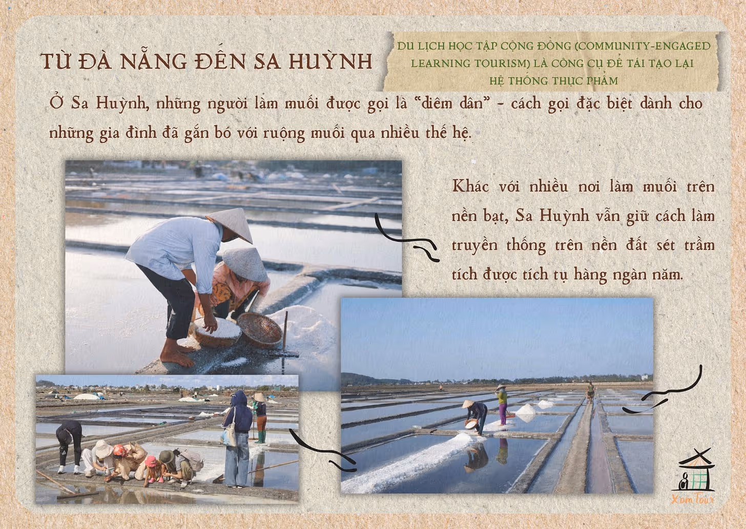 Sau khi lắng nghe chia sẻ từ thầy Trinh, chúng tôi càng háo hức mong được gặp chị Thắm và cộng đồng Sa Huỳnh để hiểu sâu hơn câu chuyện về muối và cách chị và các cô chú kêu gọi bà con tham gia dự án du lịch học tập cộng đồng. Cô Kim Hyun Sook (Loto) cũng chia sẻ thêm về thực trạng muối ở Hàn Quốc. Hầu hết, muối ở Hàn Quốc được làm trên nền bạt. Mới đây nhất, Mỹ đã cấm nhập khẩu muối biển từ trang trại muối lớn nhất Hàn Quốc (Taepyung) vì cáo buộc lao động cưỡng bức. Đây là một câu chuyện đáng buồn, và cô cho rằng mô hình ở Sa Huỳnh là một hướng đi đầy hy vọng, đáng để chia sẻ và lan tỏa.